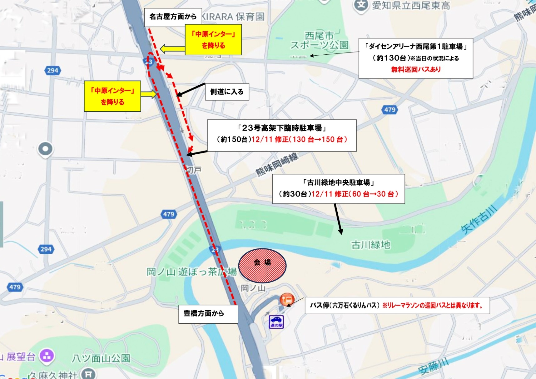 ※リレーマラソン参加者の方は「道の駅にしお岡ノ山」と「遊ぼっ茶広場」